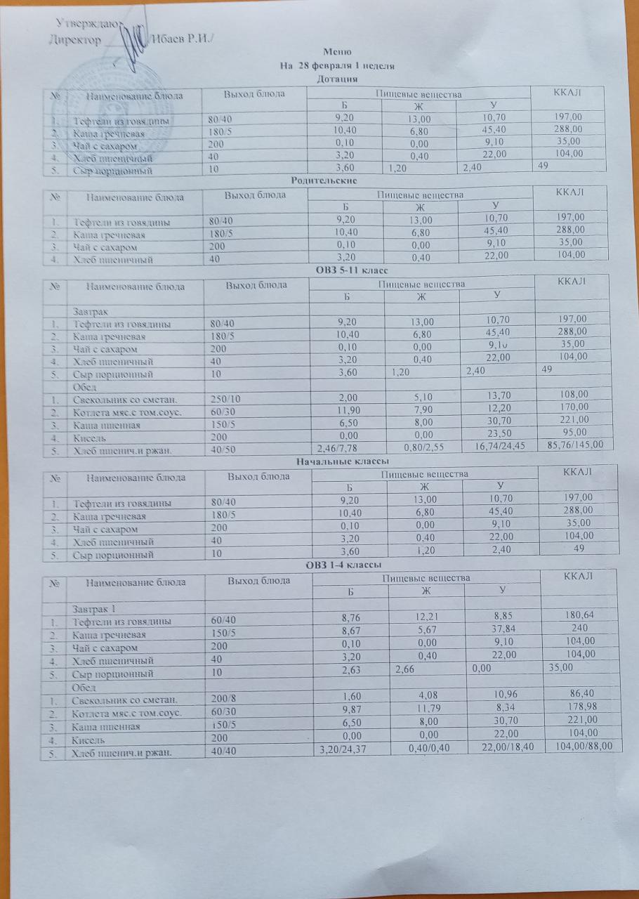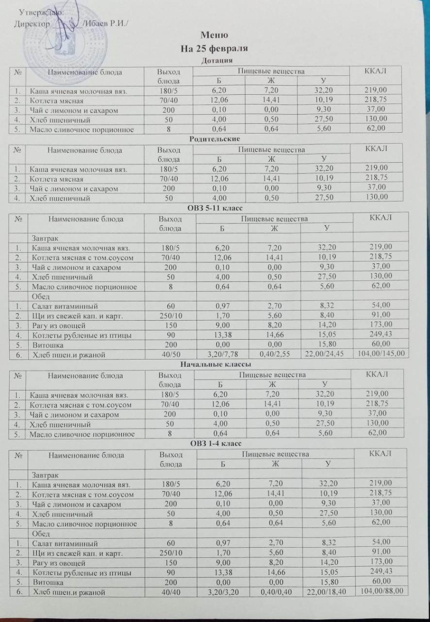 (ОВЗ 1-4 завтрак)