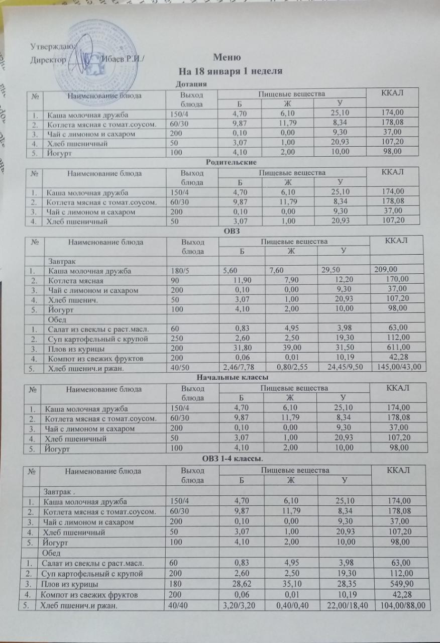 (ОВЗ 1-4 завтрак)